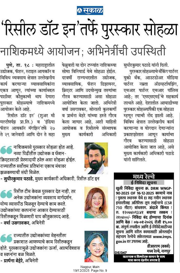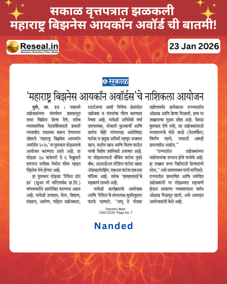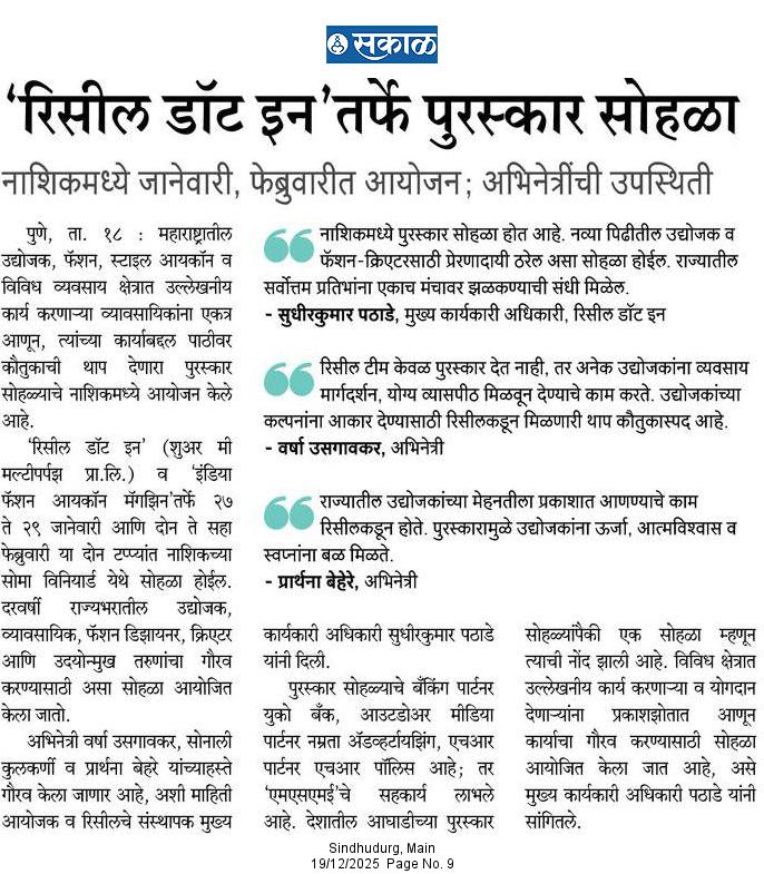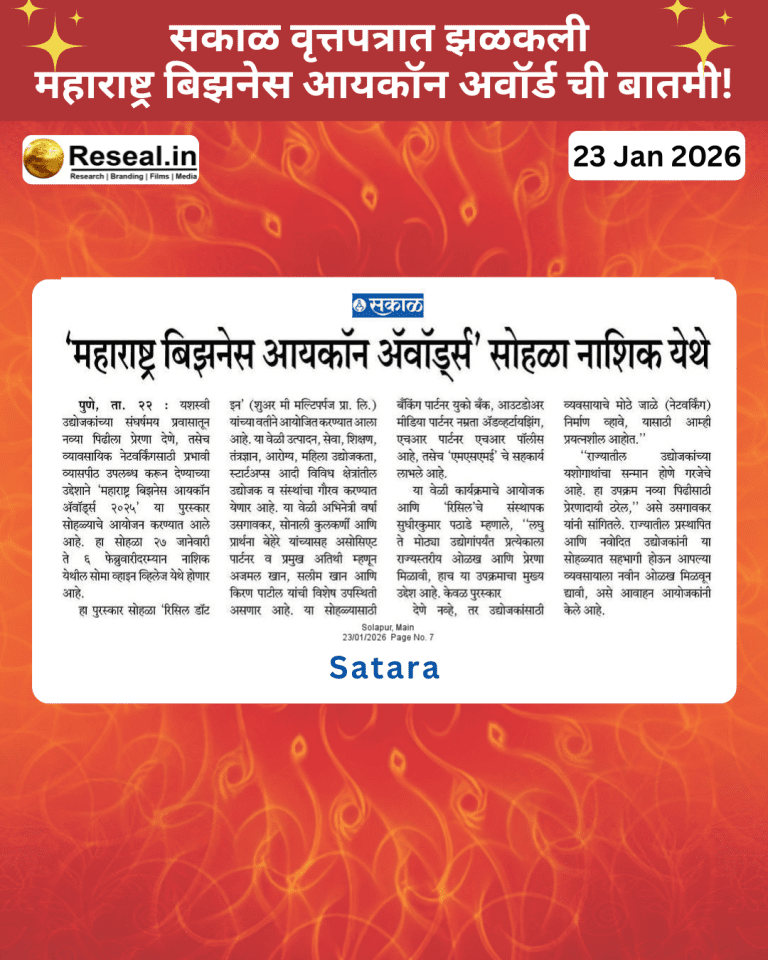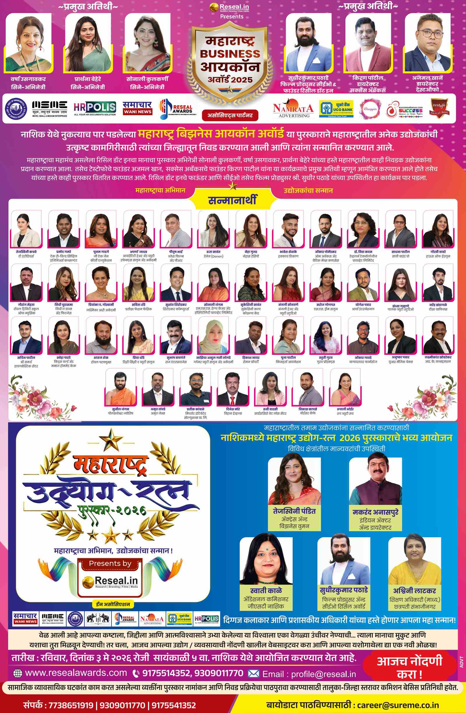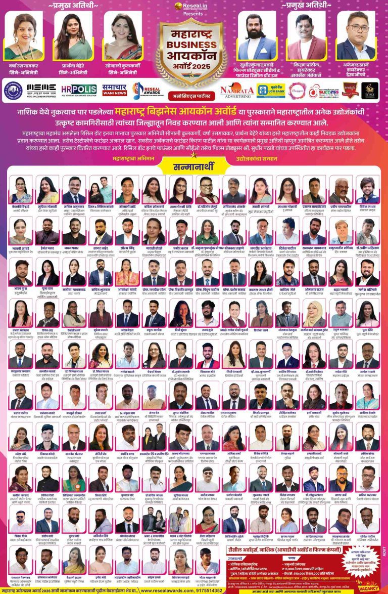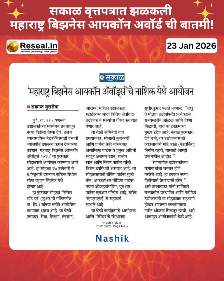 महाराष्ट्र बिझनेस आयकॉन अवॉर्ड २०२५ चे विजेते सकाळ वृत्तपत्रात झळकले! - २५ फेब्रुवारी २०२६